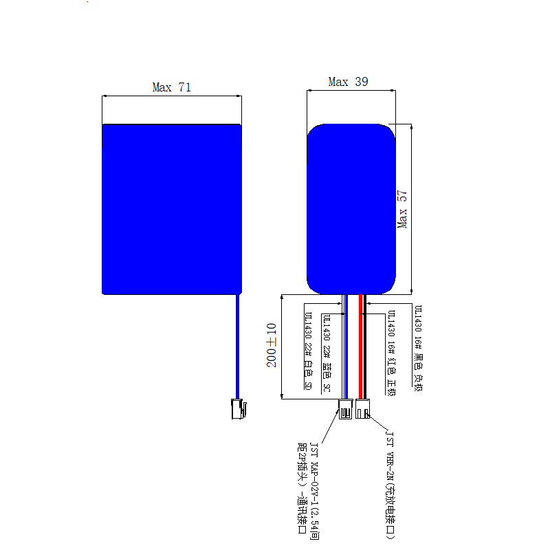 電池尺寸:39*57*71